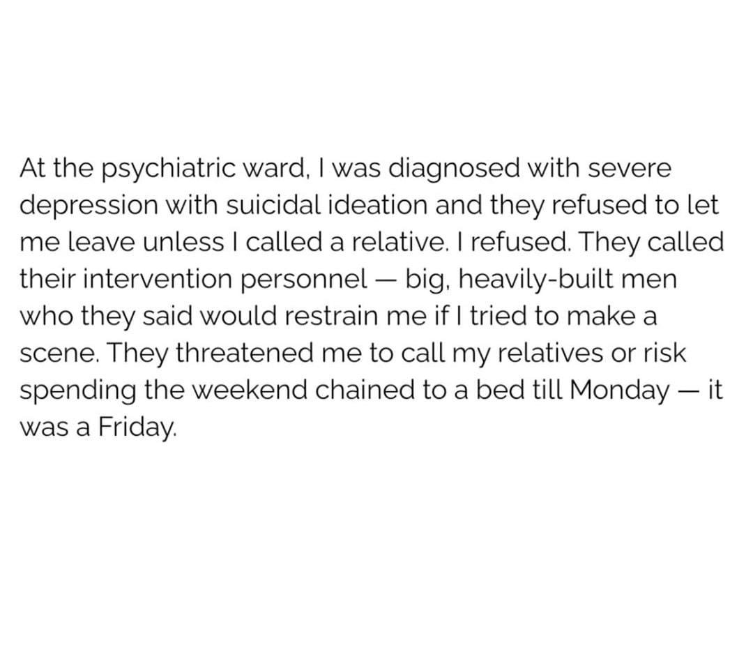 We the people with mental health conditions deserve to be treated with dignity and liberty. We deserve to receive support and care that is free of coercion, torture and abuse. We will not be silent anymore.